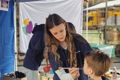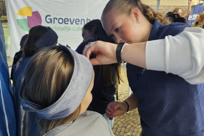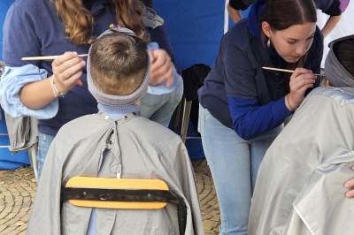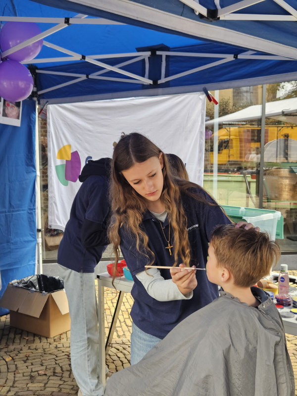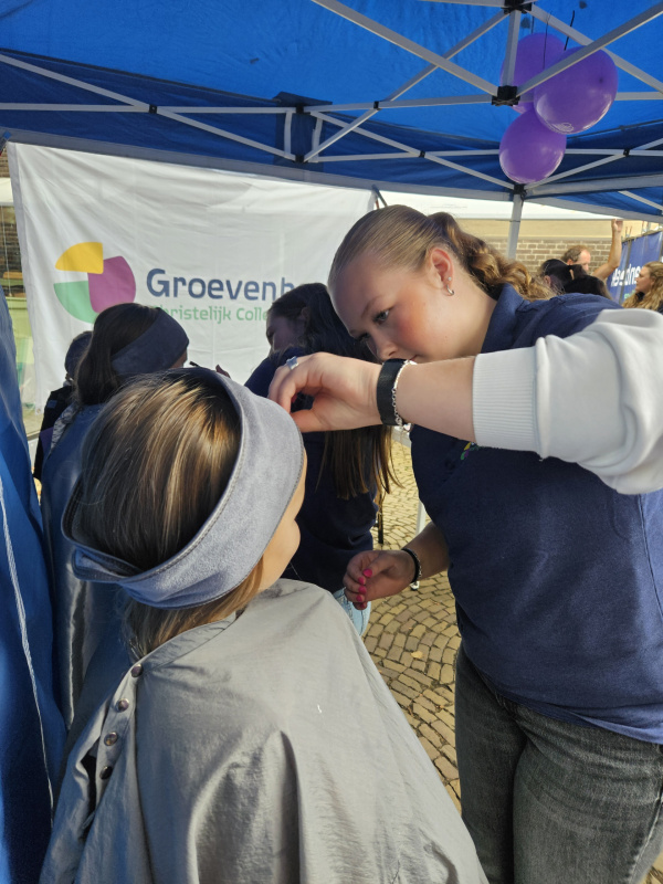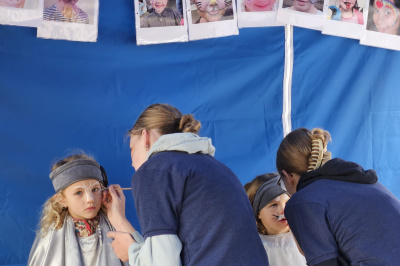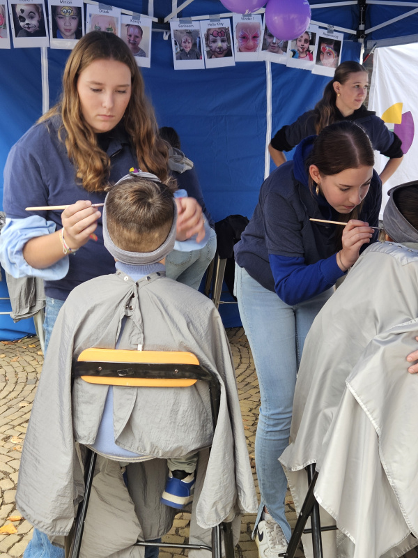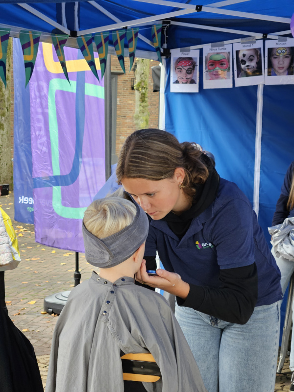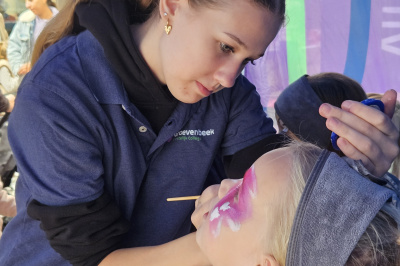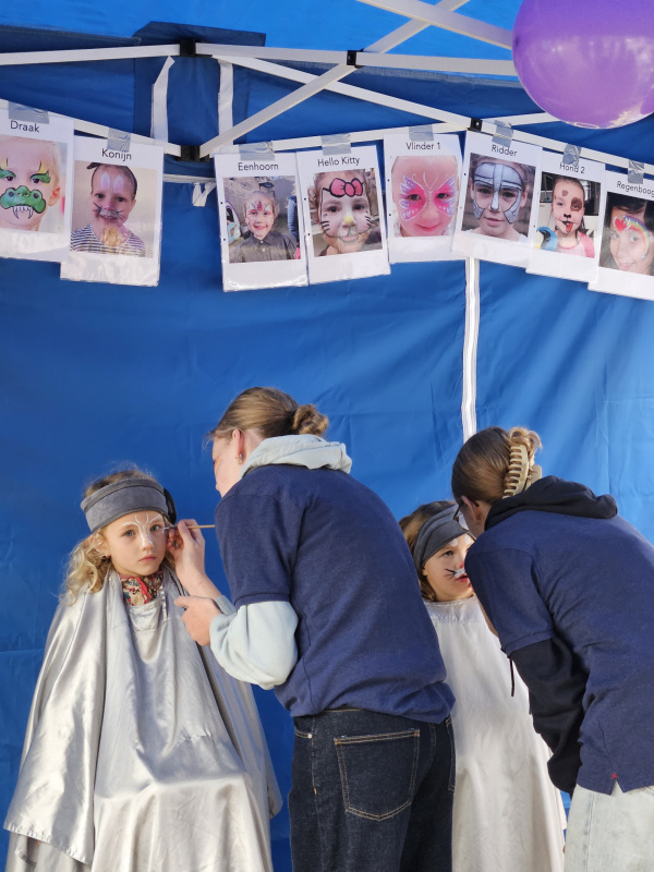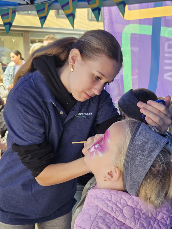 Leerlingen van de richting Zorg en Welzijn lieten hun talent zien door kinderen gratis te schminken. Wat een mooie en kleurrijke gezichten verschenen er van de kruk af. De glimmende gezichtjes waren onbetaalbaar!