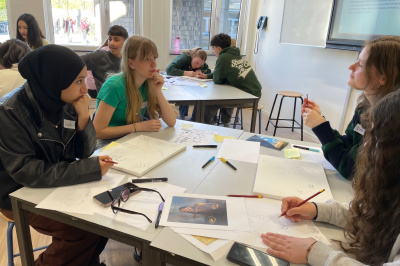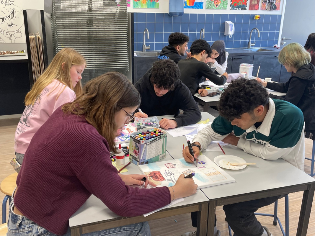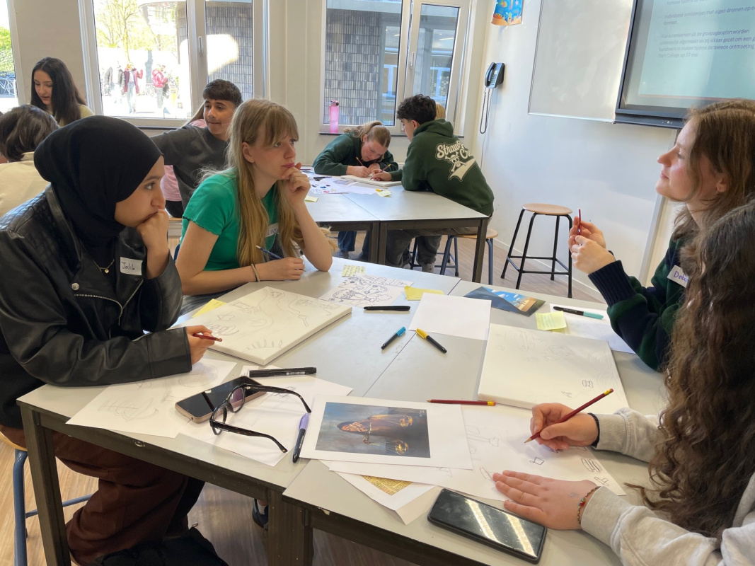 Eind mei bezoeken de leerlingen van H4BV de leerlingen van de internationale klas in Harderwijk om verder te werken aan de kunstwerken over hun toekomstdromen.