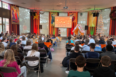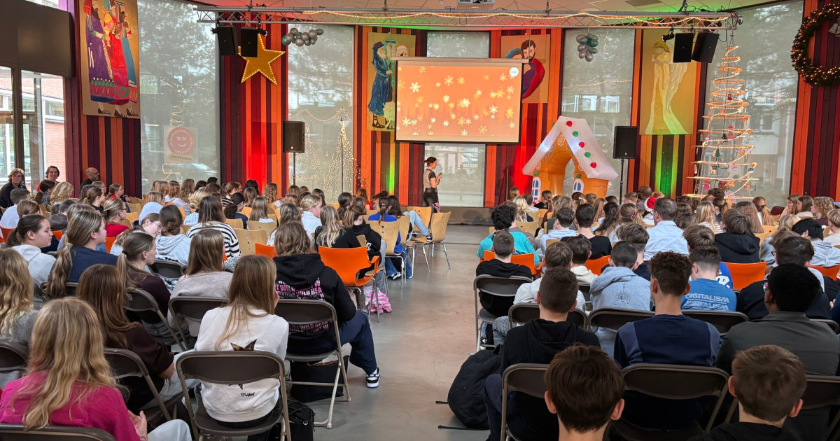 Vandaag vierden we kerst op een bijzondere manier in de aula van onze school. Het team van Creatieve Preventie verzorgde de indrukwekkende voorstelling “Wat als…?”.