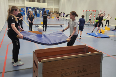 - Levende katapult: vang de gegooide bal op met een turnmatje en gooi de bal vervolgens vanaf het turnmatje in een turnkast (zonder bovenkant)