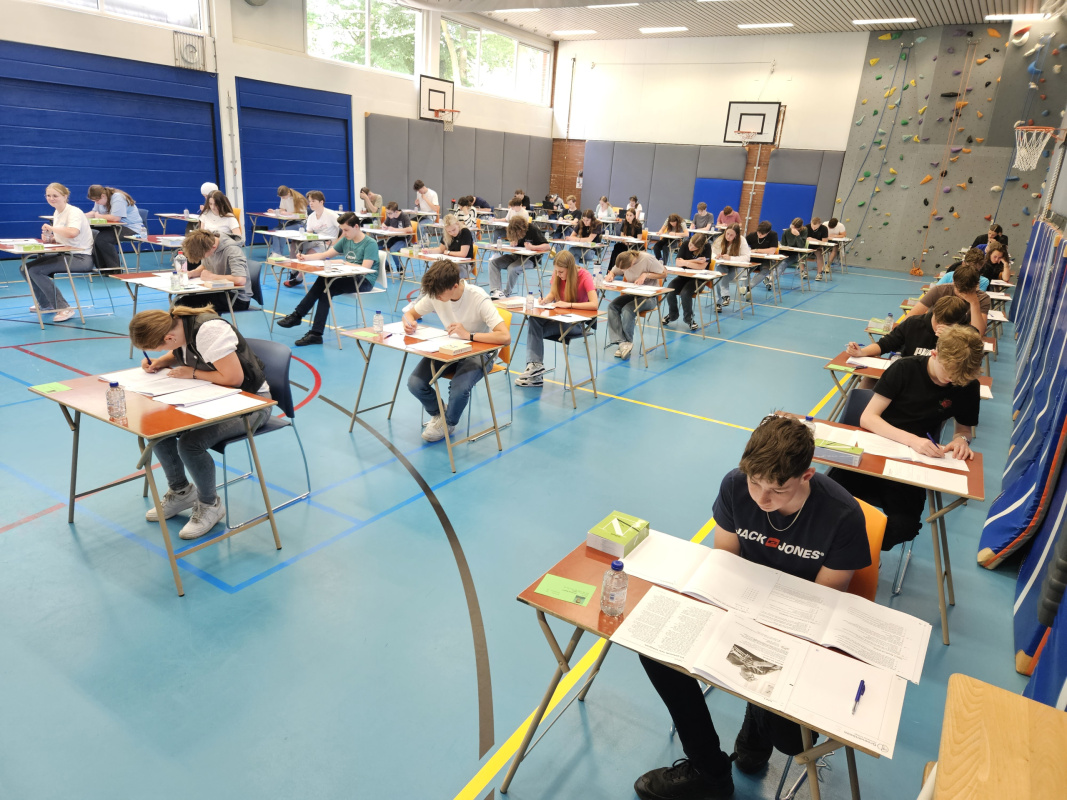 In de gymzaal staan de tafels en stoelen in lange rijen opgesteld, maar ook op werkplein 758 en in lokaal 760 staan de tafels in de examenopstelling. Smartphones en slimme horloges zijn hier deze dagen verboden. De eindexamens zijn begonnen en de leerlingen van leerjaar vier zitten midden in hun laatste weken op de middelbare school. Het maken van de examens is een belangrijk moment waarop de leerlingen laten zien wat ze de afgelopen jaren hebben geleerd op school.