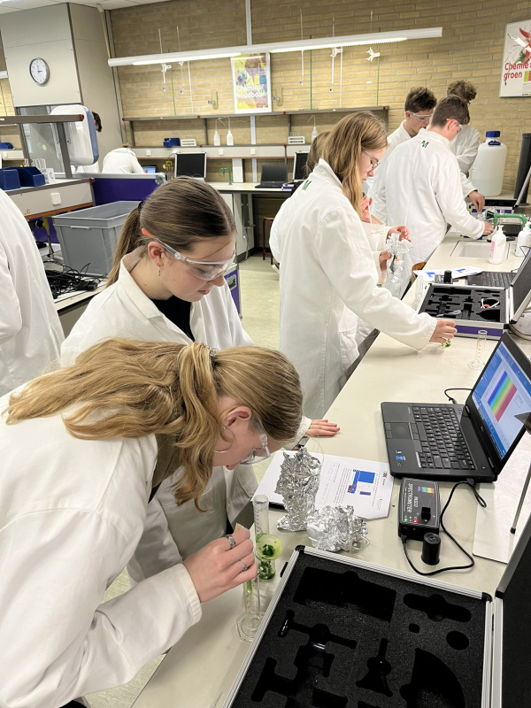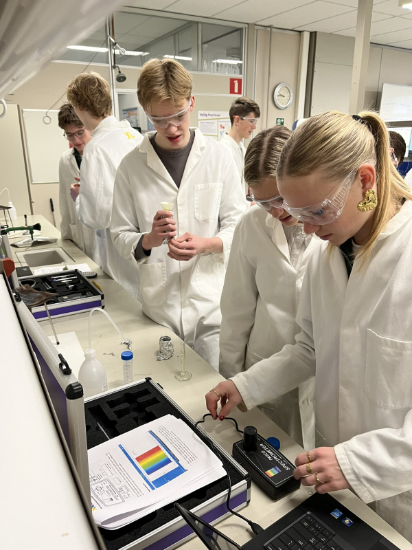 Leerlingen gaven aan dat het erg leuk te vinden om ook in de praktijk onderzoek te doen naar stoffen via analysetechnieken. We kijken terug op een geslaagd practicum. Het practicum werd mogelijk gemaakt door Bètapartners die namens de Universiteit van Amsterdam naar scholen met de apparatuur komen om deze interactieve practica te doen.